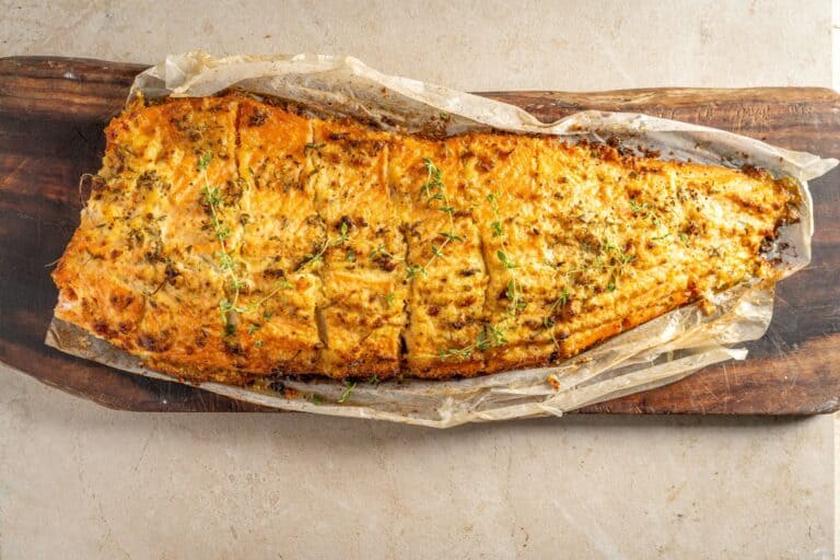 גראוודלקס – חצי פילה סלמון בכבישה ביתית. פרוס דק מוכן להגשה.